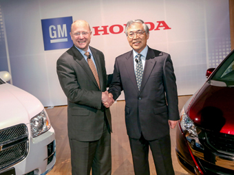 Вице-президент GM Стив Гирски (слева) и президент североамериканского подразделения Honda Тетсуо Ивамура. Фото General Motors Концерн General Motors и компания Honda подписали соглашение о совместной работе над силовыми установками на топливных ячейках. Подобные агрегаты нового поколения, а также разработки в области хранения водорода партнеры представят к 2020 году. Помимо этого, General Motors и Honda рассчитывают привлекать к работе другие заинтересованные компании. Они займутся, в частности, развитием инфраструктуры для автомобилей с силовыми установками на топливных ячейках. С 2007 года концерн General Motors выпустил на дороги общего пользования 119 водородных автомобилей. В общей сложности они проехали почти пять миллионов километров. «Хонда» продает в США и Японии машины с силовыми установками на топливных ячейках с 2002 года. Первой такой моделью стал хэтчбек FCX. Его преемник – FCX Clarity – появился в 2007 году. Новое поколения водородной модели японцев дебютирует через два года. Ранее о сотрудничестве для разработки силовых установок на топливных ячейках объявили Daimler, Nissan и Ford. Аналогичными исследованиями совместно занимаются BMW и Toyota. 03.07.2013 Материалы по теме